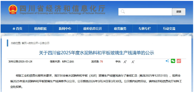四川省经信厅于3月23日发布“关于四川省2025年度水泥熟料和平板玻璃生产线清单的公示”。清单显示,截至2025年底,全省共计水泥熟料生产线110条,其中21条生产线处于停产状态,1条未投产,1条未建设。