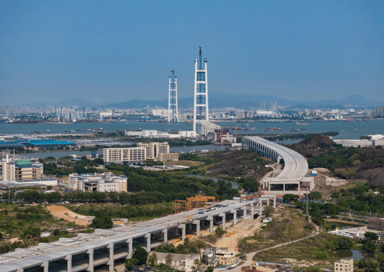 狮子洋通道全长35公里,主体工程由跨江主桥狮子洋大桥及陆域引线工程组成,横跨珠江口“A”字形顶端的咽喉要道,连接广州南沙区和东莞沙田、虎门两镇,是粤港澳大湾区发展的又一重要落子。