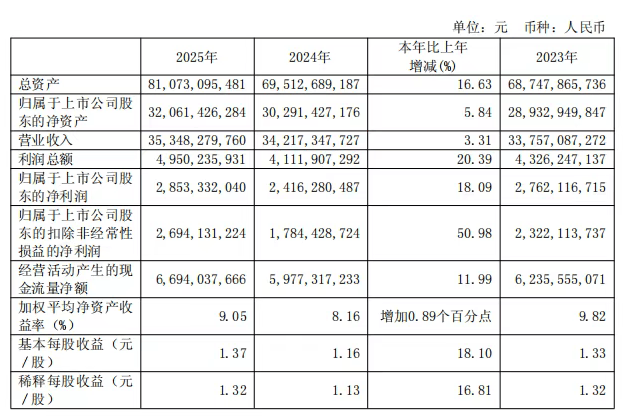华新水泥于3月26日晚间发布2025年业绩报告。公司全年实现营业收入353.5亿元,同比增长3.31%;归属于上市公司股东的净利润28.53亿元,同比增长18.09%。在水泥行业整体承压的背景下,华新水泥通过优化产品结构和成本管控,实现了利润的较快增长。