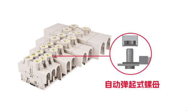 町洋DKM系列导轨端子额定电压为1500V,最高电流可达460A,适配高功率设备,支持面板和导轨安装。DKM-U型号配备自动弹起式螺母,一体化设计减少配件丢失风险,提高施工效率。
