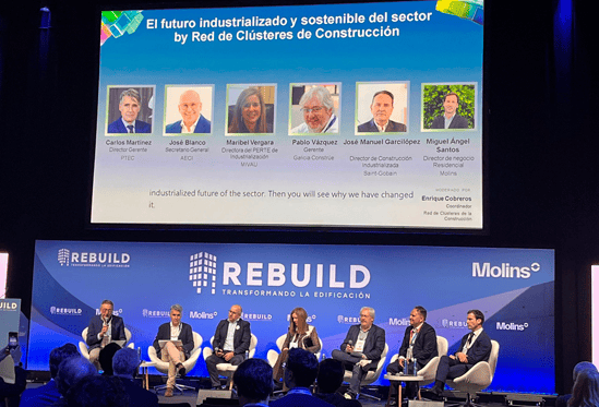 在会议期间,圣戈班代表参与了多场关于当前建筑挑战的讨论。工业化建筑总监José Manuel Garcilópez在行业未来会议中指出,工业化建造能够提高质量、缩短工期,并应对劳动力短缺等挑战,同时不损害技术性能。工业化建筑商务技术员Rubén Corte将这一方法论作为提高项目效率和可持续性的工具。创新解决方案负责人Mónica Liñán介绍了Make-to-Order服务,专注于工业化项目的按需制造,旨在优化材料和流程使用、减少浪费,并根据项目特定需求调整解决方案。
