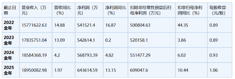 3月24日,中国化学公告,2025年度公司经营业绩持续向好,利润水平创历史新高,实现营业收入1895.01亿元,同比增长1.97%;归母净利润64.36亿元,同比增长13.15%;实现扣非后归母净利润60.90亿元,同比增长10.44%。