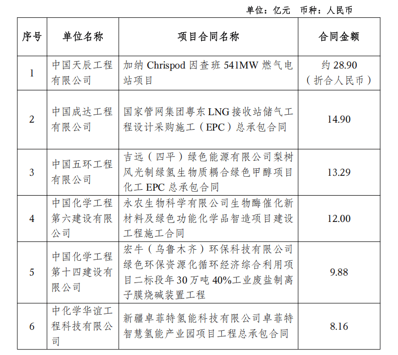 其中,月内单笔合同额5亿元以上项目10项,最高为加纳Chrispod因查班541MW燃气电站项目约28.9亿元,如下: