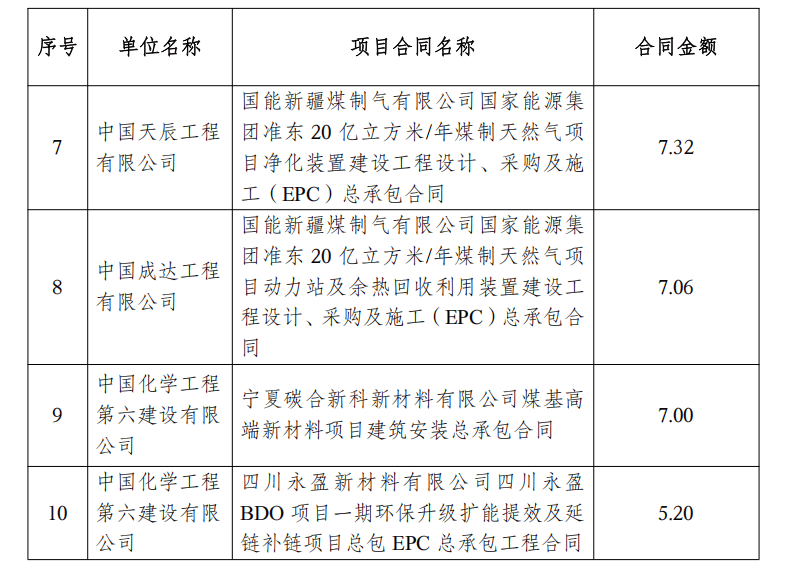 其中单笔超过5亿元的合同有115个重大项目,总签约项目数量合计4760个。在化工新材料这一领域,单笔超过5亿元的合同有54个,涉及浙石化、中海壳牌、海辰化学、甘肃巨化、陕煤集团、兖矿鲁南化工等企业。