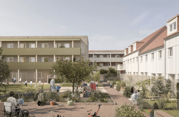 该住宅区项目住宅组合涵盖联排别墅、复式公寓和从一居室到四居室的公寓,全部采用木框架建造并配备空气源热泵。景观设计将采用可持续排水系统、可食用植物种植和自然游乐区,街道设计优先考虑步行和骑行。该住宅区计划被视为在南部大规模推广社区主导住房的试验床,通过居民参与设计的方式,打造更具凝聚力的社区空间。