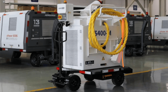 该飞机地面电源集成了静变电源、智能卷线装置和拖曳底盘车,采用拖曳式设计,移动灵活,适配远机位和近机位等多种场景。模块化设计使其体积小、重量轻,便于部署和维护,降低运营成本。设备搭载自主云平台,支持数字化管理和远程运维。同时,应用LVRTech专利技术(低电压穿越技术),确保在电网电压跌落时仍能稳定供电,保障机场地面能源可靠性。