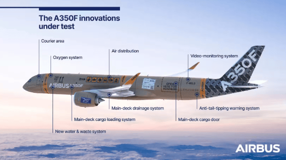 维度网讯, 欧洲飞机制造商空中客车公司宣布,其新型A350F货机已正式开始地面测试程序。这些测试是飞机投入服役前的重要环节,展示了将新机型推向市场的复杂性。测试在总装期间进行,涉及多个系统的检查。
