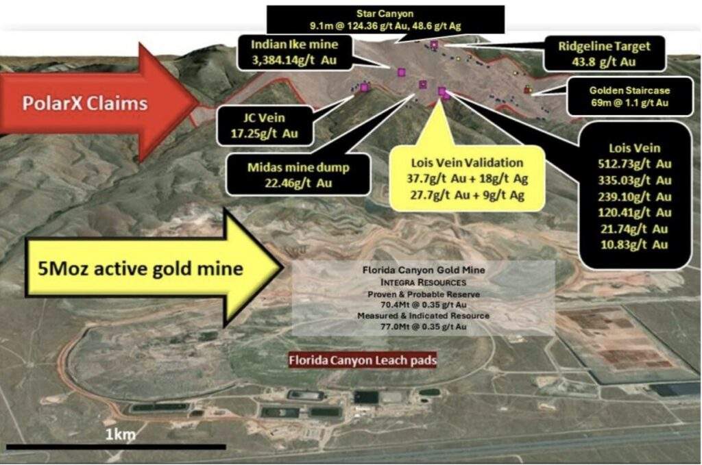之前在Ridgeline化验的岩石样品品位高达43.8克/吨金和86.1克/吨银。新结果显示,Ridgeline的品位比之前在Star Canyon的钻探活动显著更高,证明了Black Canyon项目矿权区巨大的矿化潜力。沿主断面的钻探覆盖了超过300米的宽度,系统在横向和深度上仍然开放。在中部区域仅钻了两个RC孔,截获了宽阔的浅成热液金带,需要更多测试。PolarX计划于五月在Ridgeline恢复RC钻探,并申请Black Canyon山谷地区的钻探许可,以测试历史上的高品位矿脉。