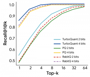 在多项基准测试中,如ZeroSCROLLS和Needle in a Haystack,TurboQuant在保持高精度的同时显著减少了内存使用。测试显示,它能够将缓存精度从16位压缩至约3位,在H100 GPU上实现8倍加速,并提升向量搜索的召回率。