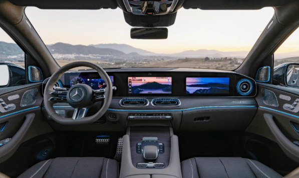 外观上,2026款GLS采用了重新设计的前脸,配备更大尺寸的格栅,带有镀铬边框和集成照明元素,格栅融入星形图案细节,引擎盖上的三叉星徽在部分市场可点亮。保险杠、头灯和尾灯也经过更新,采用星形灵感照明特征,同时新增了漆面颜色和合金轮毂设计。内饰方面,GLS标配MBUX超屏幕布局,将三块12.3英寸显示屏整合在单一玻璃面板下,运行于新的梅赛德斯-奔驰操作系统(MB.OS),利用人工智能实现个性化交互并支持空中更新。