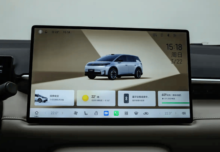高阶智驾与智能座舱深度集成。 埃安N60全系标配激光雷达与4D毫米波雷达。该智驾系统采用文远L4级同源一段式端到端大模型,支持全场景智能辅助驾驶及自动泊车。座舱内部搭载15.6英寸2.5K高清屏,内置集成了AI语音大模型的座舱系统,并支持多系统手车互联。此外,车辆配备2.38㎡全景天幕及电动遮阳帘。