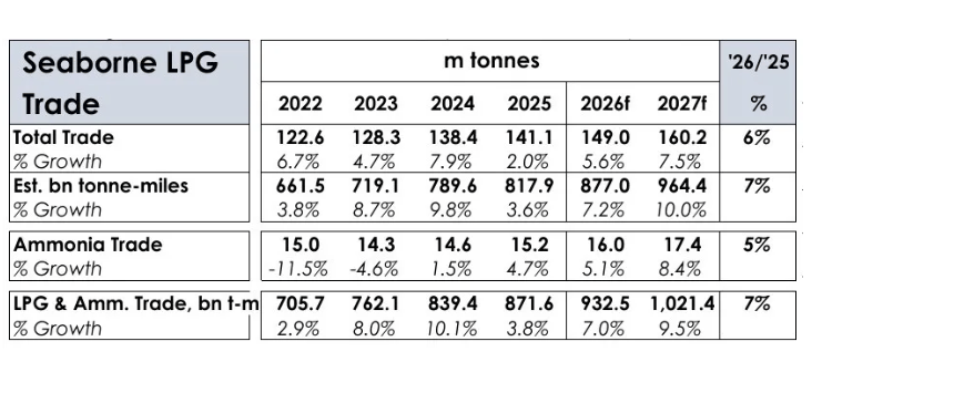 总体来说,克拉克森认为,未来一年,2026年有望继续成为LPG运输市场的积极年份。