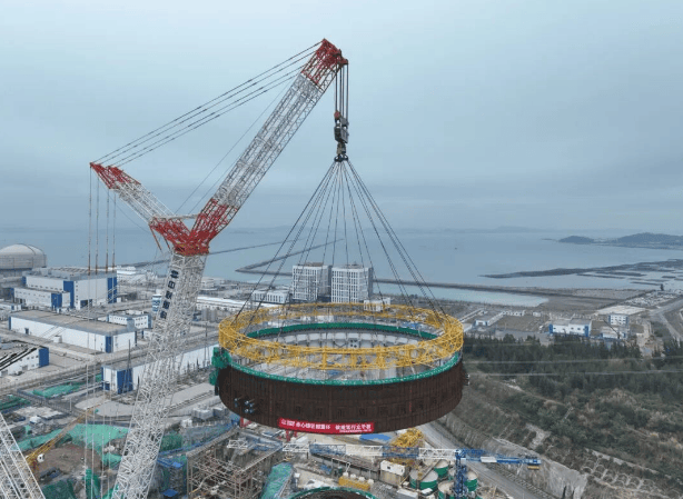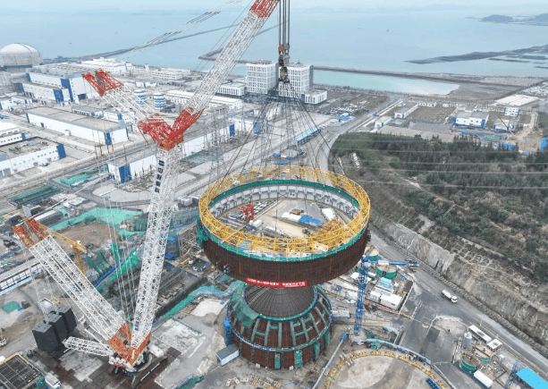 维度网讯,4月3日,中国中核二四圆满完成“华龙一号”漳州核电4号机组钢衬里模块六吊装,标志着该机组钢衬里筒体模块吊装工作全部完成。