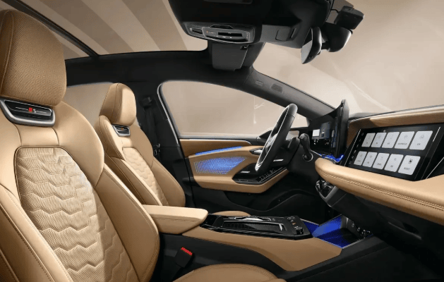 内饰方面,奥迪A6L e-tron搭载三屏设计,尺寸为11.9、14.5和10.9英寸,副驾屏有隐私和散射模式。配备AR-HUD和Bang & Olufsen音响系统,含20枚扬声器。动力提供单电机和双电机版本,双电机总功率405千瓦,单电机最大功率215至265千瓦。CLTC续航720至815公里,800V架构支持270千瓦快充,10分钟补能302公里。加速时间为4.5至5.9秒,配备自适应空气悬架和FSD减振器。