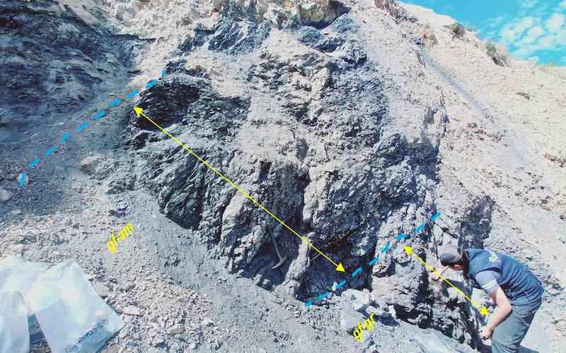 首阶段钻探覆盖AG_GC_001至AG_GC_004四个钻孔,全部发现矿化迹象。其中AG_GC_002钻孔在288.40米至546.35米区间连续发现多个含钼区段,最高品位达2820ppm钼;AG_GC_004钻孔在274.5米至275.4米区间发现521ppm钼矿段。这些钼矿化带与铜-银-金矿体空间分离,与安山质斑岩指状体及钾质蚀变晕密切相关。尽管AG_GC_003因钻探偏差未达目标区,但早期测试已证实矽卡岩厚度超预期。