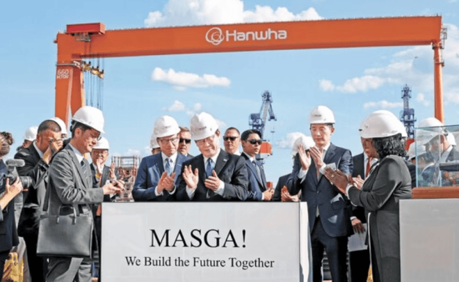 更大的背景是,韩国对美船舶合作本身已经被纳入更高层级的经贸与产业安排。韩国承诺对美国船舶合作相关领域投入 1500 亿美元,这是韩美贸易安排和造船合作框架中的关键组成部分;所谓 MASGA(Make American Shipbuilding Great Again),本质上就是美国希望借助韩国船企、技术和资本,重振本土造船体系的一部分。三星重工与美国船厂的合作,正是在这一政策框架下展开的。而韩国另外两大造船集团,同样也积极拥抱美国造船战略:韩华海洋收购并计划重振费城造船厂;现代重工暗示有意在美国进行收购,并与亨廷顿·英格尔斯工业公司达成合作,旨在扩大在海军和商用船舶建造及维修领域的合作。