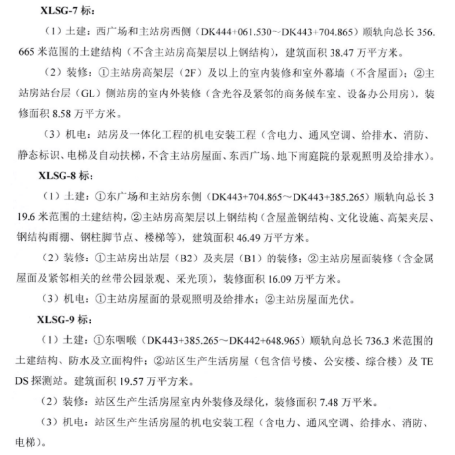 本次招标共划分为4个标段:XLSG-6、7、8、9,详细内容如下: