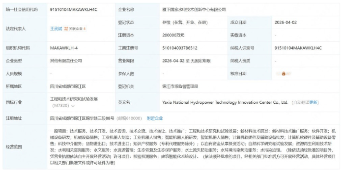 截至目前,中国雅江集团旗下已有6家新公司。这一水电技术创新中心的设立,旨在推动水电技术研发和应用,促进相关产业的可持续发展。