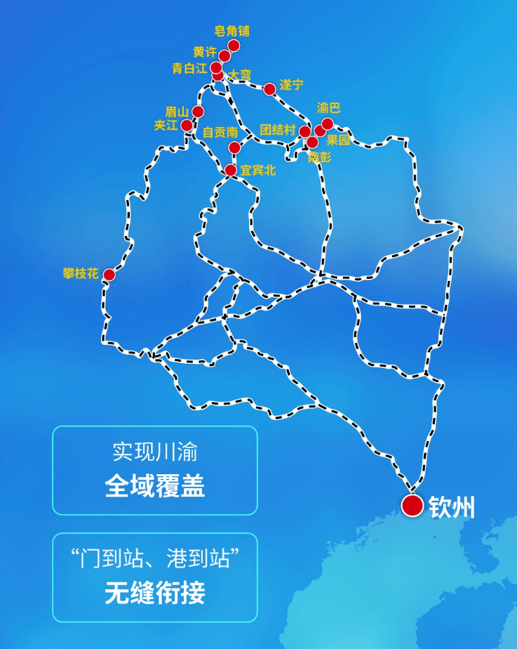 四川站点:大弯站、眉山站、夹江站、自贡南站、宜宾北站、皂角铺站、青白江站、遂宁站、攀枝花站、黄许站