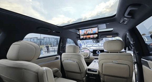 内饰方面,环抱式座舱设计配合全液晶仪表和悬浮式中控屏,提升了整体质感。配置包括双手机置物架、风冷无线充电装置、后排双侧小桌板、吸顶屏和副驾驶老板键。第三排座椅放倒后,后备厢容积可达1268升,提供檀香棕和象牙米两种内饰颜色。