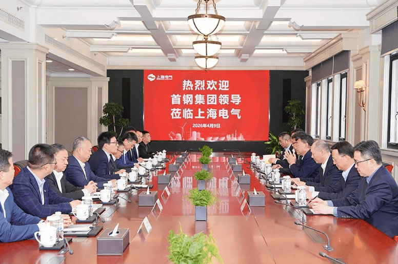 4月9日下午,中国上海电气集团党委书记、董事长吴磊与到访的首钢集团有限公司(以下简称“首钢集团”)党委书记、董事长赵民革举行会谈,双方就深化产业协同、推动绿色转型、联合技术攻关等话题深入交换意见。
