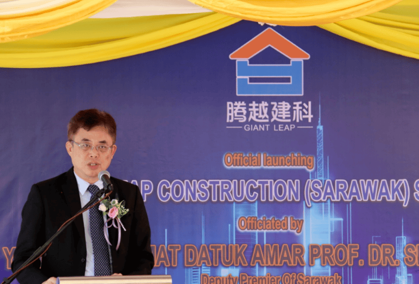 巴达旺市议会主席陈开先生为砂拉越分公司开幕致辞,对砂拉越分公司的成立表示热烈祝贺,并指出这不仅是政企发展的新起点,更彰显了腾越建科对砂拉越未来前景充满信心。陈开主席强调,砂拉越正朝着2030年成为高收入发达州的目标迈进,建筑业必须加快数字化转型,积极采用建筑信息模型(BIM)、人工智能(AI)及机器人技术,以提升生产力、加强安全标准,并减少人工的依赖。在可持续发展方面,陈开主席指出,绿色建筑实践已成为必然选择,包括推广环保材料、节能设计及最大限度减少环境影响的施工方法。他同时呼吁企业重视本地人才培养,为砂拉越人提供参与高价值、科技驱动型建筑项目的技能培训。最后,陈开主席正式宣布腾越建科公司砂拉越分公司开业,并期望该公司继续以质量、创新与可持续性为行业树立标杆。