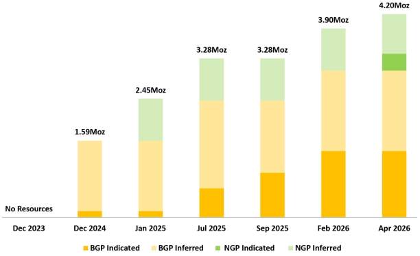 修订后的矿产资源估算整合了Tchaga和Gogbala矿床,包括总资源116万盎司、指示资源35万盎司和推断资源82万盎司,均保持1.2克/吨品位。指示资源的引入反映了钻探密度和地质信心的提升。