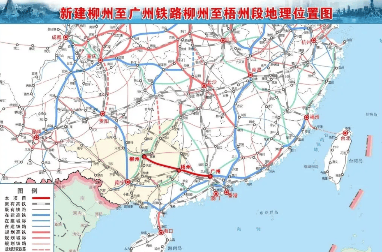 其中柳广铁路广西段(柳州至梧州铁路)于2020年由广西发改委批复立项,广西全资建设,于2022年9月全线开工建设,2026年1月6日进入铺轨阶段,计划于2026年底建成通车。