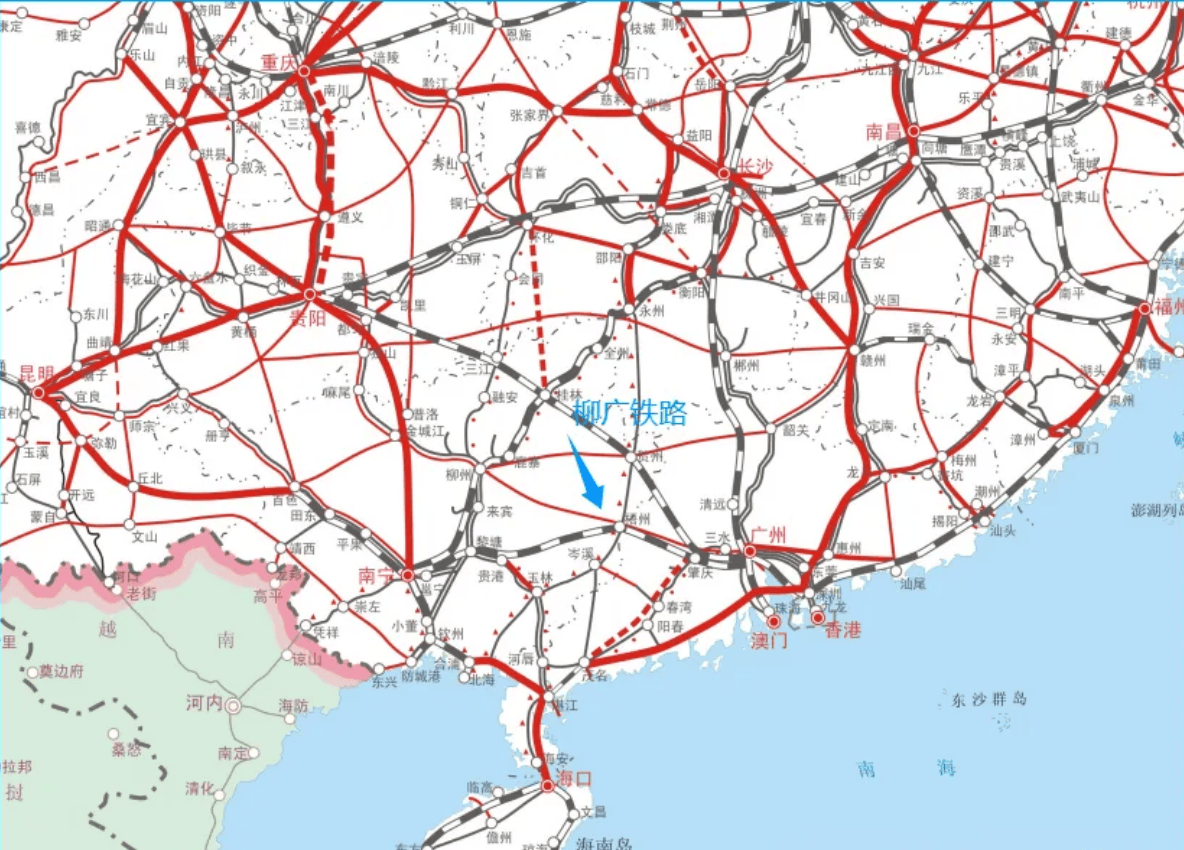 随着黔桂铁路增建二线工程全面开工建设,届时,新的黔桂铁路将与柳广铁路串联起来,以柳州为枢纽,成为四川、重庆、贵州经柳州直通粤港澳大湾区方向最便捷的货运主通道。