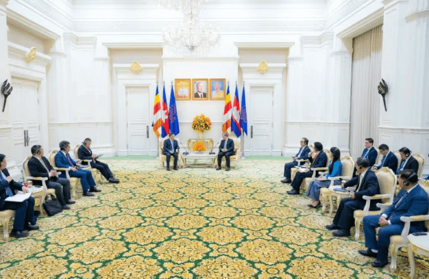 洪玛奈对宋海良一行到访表示热烈欢迎,对中交集团长期以来为柬埔寨经济社会发展作出的突出贡献给予高度评价。他表示,柬埔寨是最早响应、参与和践行共建“一带一路”倡议的国家之一,在应对全球经济波动及区域挑战中表现出了极强的韧性。中交集团是柬埔寨值得信赖的重要合作伙伴,在基础设施建设、城市综合开发、绿色能源转型等领域展现了卓越能力,建设了一批具有示范引领作用的标志性工程,助力柬埔寨社会经济发展和民生福祉改善。当前,柬埔寨正加快推进实施“五角战略”,由中交集团参与投资并承担建设、运营的扶南德佐综合水利工程,在柬埔寨发展的历史进程、民生改善和国家战略层面具有不可替代的重要地位,希望中交集团高度重视项目第二标段的建设,为柬埔寨经济社会发展作出新的更大贡献。