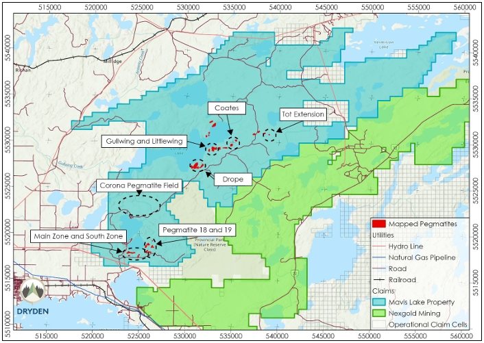 该勘探计划基于梅维斯湖项目已积累的大量数据集,包括岩石地球化学、基于LIBS的伟晶岩分馏分析以及高分辨率航磁测量数据。科罗纳伟晶岩田是梅维斯湖北部远景区域更广泛勘探的一部分,该公司正在并行推进多个靶区以支持长期资源增长。这些靶区包括格尔温伟晶岩(已确定勘探目标为700万至1000万吨,品位0.3%至1.2%氧化锂),以及托特、小翼、科茨和德罗普等其他远景区域。此外,梅维斯湖项目整体设有一个概念性勘探目标,预估资源量为1800万至2900万吨,品位0.8%至1.2%氧化锂。