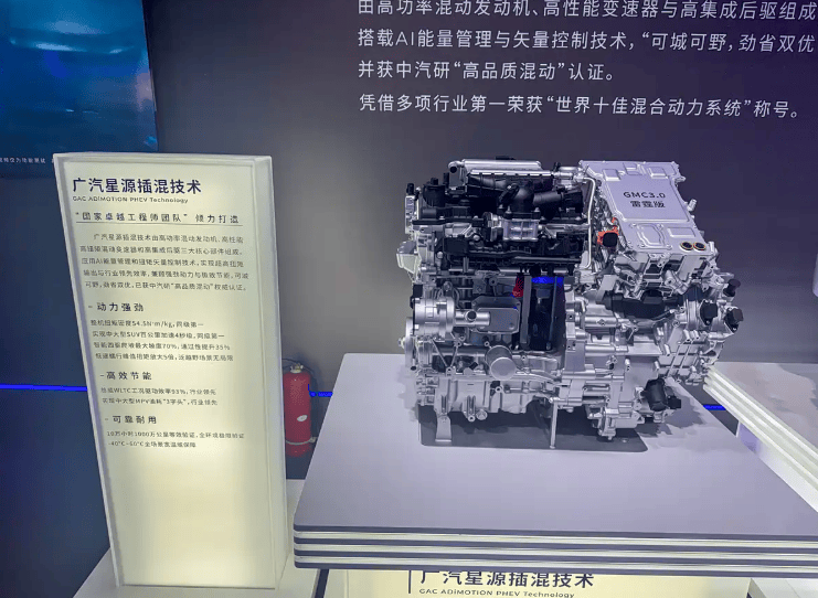 星源动力包括插混、超级双擎和增程系统,覆盖多种新能源需求。星源插混采用1.5T发动机,热效率提升近3%,最大功率125kW,峰值扭矩245N·m,并提供GMC 3.0混动变速器雷霆版和疾风版。雷霆版支持中大型SUV百公里加速进入4秒级,应对全地形挑战;疾风版重量低于100kg,WLTC驱动效率93.05%,推动B级MPV油耗降至3升时代。星源超级双擎配备5.4kWh电池,纯电续航最长17公里,油耗较传统燃油车降低超40%,并支持OTA升级和户外放电功能。