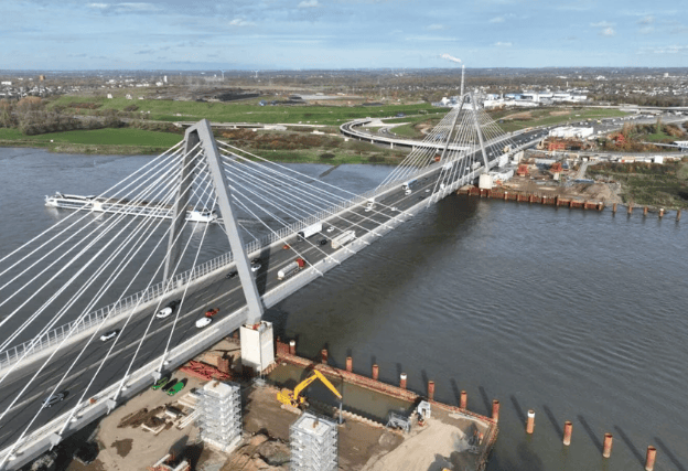 该大桥工程由HOCHTIEF及其合作伙伴(包括SEH、Eiffage等)承建,一期结构已于2023年底交付。目前,项目已进入涉及大规模土方工程与旧桥拆除的核心阶段。HOCHTIEF基础设施欧洲执行副总裁Klaus Grüttner指出,通过这种高频次的桥梁测绘,施工团队能精确完成土方计费核算,并实时进行目标与实际进度的对比。