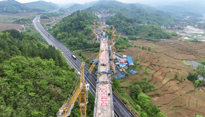 为保障中跨合龙高质量完成,中铁五局始终坚持“科学谋划、精益施工、安全可控”的原则,多次召开专题会,细化合龙温差控制、梁体线形监测、混凝土浇筑与养护等关键工序标准。同时,采用智能造桥机,该设备搭载多维度传感监测系统,可实时采集梁体应力数据、精准控制液压同步作业,显著提升合龙施工的精度与效率。