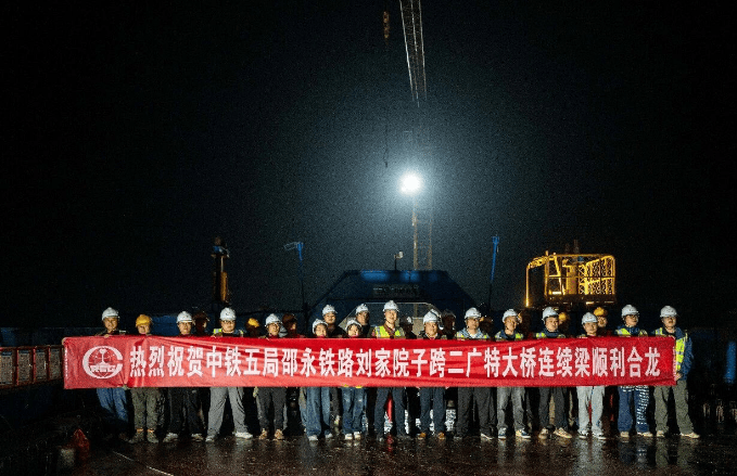 维度网讯,4月13日,随着最后一方混凝土浇筑完成,中铁五局二公司施工的邵永铁路全线控制性工程——刘家院子跨二广高速特大桥连续梁顺利合龙,标志着邵永铁路工程建设再获关键突破,为项目全线贯通奠定了坚实基础。