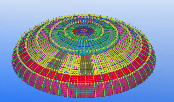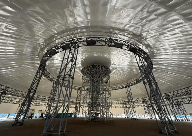 在外穹顶模块整体组焊完成后,对背肋角钢及型钢拉杆进行焊接成为首道关键挑战。项目团队迅速抽调精英焊工组成突击队,最终提前完成全部焊缝施工,一次合格率达到100%,为外穹顶吊装筑牢基石。