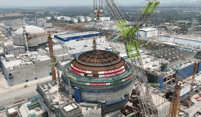 维度网讯,4月13日,“国家名片”华龙一号再传捷报,中核二二承建的海南昌江核电4号机组外穹顶顺利吊装就位,标志着昌江核电二期工程土建施工进入全面收尾阶段。