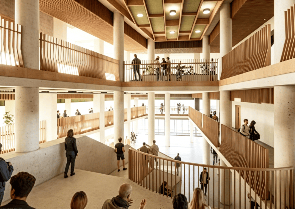 根据帝国理工学院的时间表,主体建筑合同工程将于2026年晚些时候启动,预计2029年底完工。该方案是帝国理工学院白城校区南部总体规划中七个开发地块之一,原为Dairy Crest工厂场地,2018年提交规划申请,2021年获得大纲批准。大学还计划在拟建新大楼旁与曼彻斯特开发商Bruntwood合资建设一座商业项目,由KPF设计,原定位生命科学领域,现已转向金融科技方向。整个5.7公顷的新校区预计需20年建成,与邻近3.1公顷的白城校区北区共同构成Allies and Morrison总体规划的完整布局。