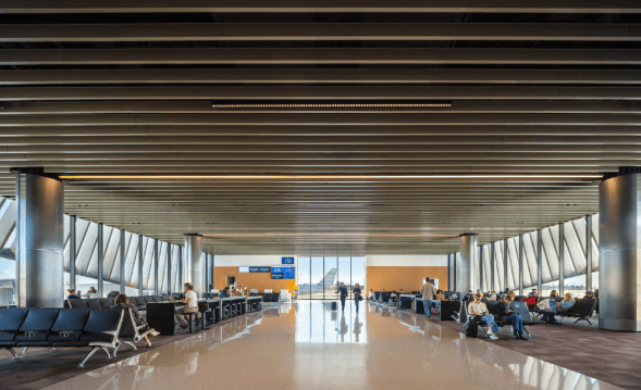 维度网讯,伍兹贝格(Woods Bagot)设计的洛杉矶国际机场(LAX)中场卫星南航站楼(MSC South)于2026年4月正式竣工交付。该航站楼总面积15万平方英尺,设有8个窄体飞机登机口,作为汤姆·布拉德利国际航站楼的延伸设施,将显著提升机场在2028年洛杉矶奥运会前的运营容量。项目由伍兹贝格担任设计建筑师,W.E. O‘Neil Construction承担总承包与施工管理,Buro Happold负责结构工程与可持续咨询。