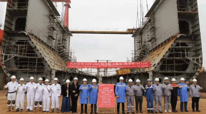 维度网讯,中国南通中集太平洋海洋工程有限公司承建的两艘同型20000立方米LNG运输加注船迎来大节点。