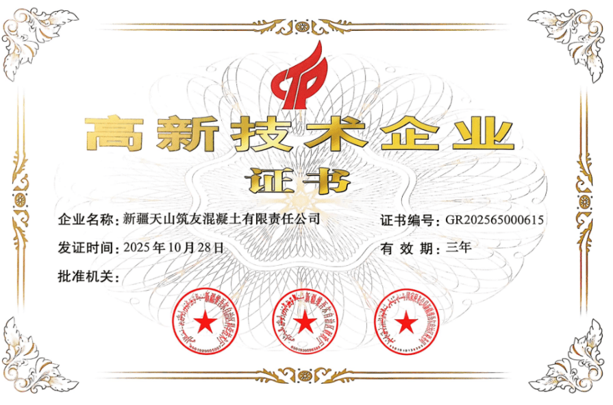 维度网讯,近日,新疆天山筑友混凝土有限责任公司成功获评国家级高新技术企业,标志着其在传统混凝土行业向科技化、绿色化转型方面取得重要进展。