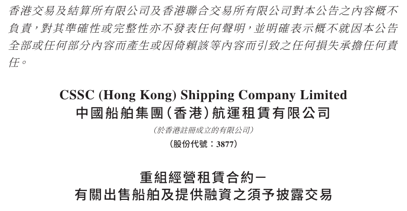 维度网讯,中国船舶集团(香港)航运租赁有限公司(中船租赁)发布须予披露交易公告,公司全资特殊目的公司作为卖方,与买方UHLFLASH等九家德国注册公司订立协议备忘录,拟出售九艘13000吨级重吊船舶,总代价为2.64亿美元。