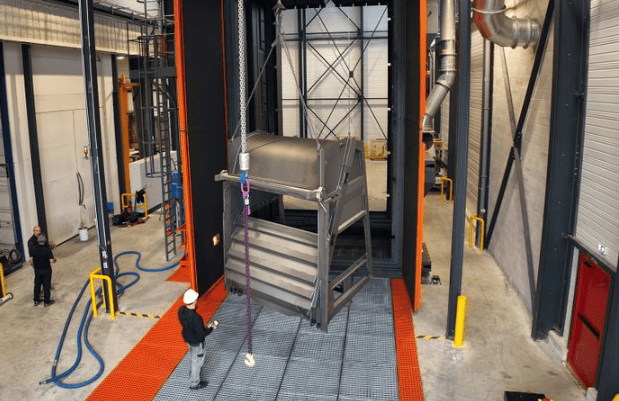 维度网讯,法国Semat SA公司近期在拉罗谢尔总部完成了新生产车间的建设,优化垃圾处理专用车辆的制造与维护流程。在该车间的核心工艺环节中,公司引入了由Rösler提供的RHBD-T型节拍式悬挂输送通过式设备,专门用于大型垃圾车容器的喷砂处理。这一工序的主要目的是清除焊接后产生的氧化皮及锈蚀,为后续的喷涂作业提供洁净的表面基础。