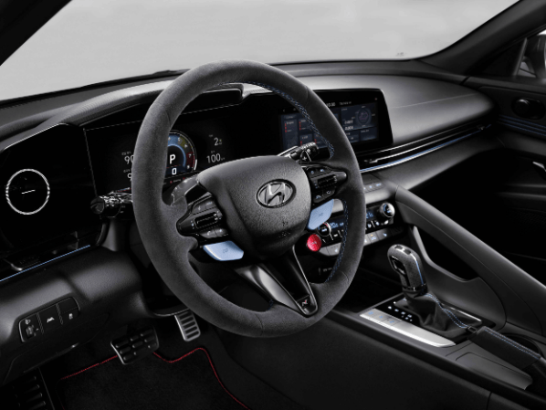 伊兰特N拥有更多定制选择,包括碳纤维后扰流板和后视镜盖,以及19英寸锻造合金轮毂,重量约10.5公斤。内饰可添加Alcantara换挡杆和中央扶手等配件,丰富驾驶体验。