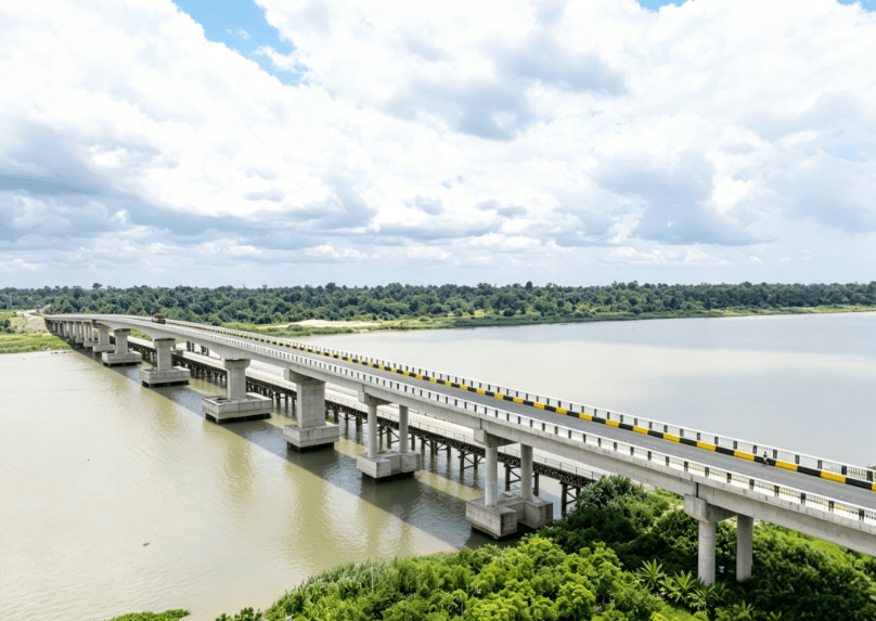 奥博罗马桥梁工程全长630米,跨越尼日尔河下游重要支流农河,采用主桥预应力混凝土连续箱梁与引桥预应力T梁组合结构,主跨达75米。该桥梁工程是连接州首府耶那瓜与南伊贾地方政府行政中心奥博罗马的关键控制性工程,也是巴耶尔萨州规模最大的桥梁工程和区域交通体系中的核心节点。