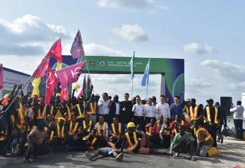 维度网讯,尼日利亚巴耶尔萨州奥博罗马桥梁工程项目近日举行竣工仪式,该桥梁工程由中国土木工程集团有限公司承建。尼日利亚总统博拉·艾哈迈德·提努布、前总统古德勒克·乔纳森及夫人、联邦参议长戈德斯威尔·阿克帕比奥、巴耶尔萨州州长杜耶·迪里等政要及传统领袖出席活动,并共同为项目启用揭牌。
