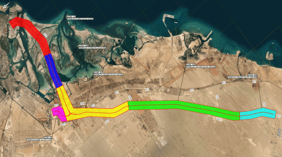 该高速铁路项目位于阿联酋首都阿布扎比境内,由阿联酋国家铁路公司伊提哈德铁路投资建设。工程内容涵盖约97公里双线高速铁路及4座现代化客运枢纽站的设计与建造,包括全线路基、高架桥梁、隧道、大型挡土墙及站房与配套设施等全方位土建施工。该高速铁路设计最高时速达350公里/小时,从西南端阿尔雷姆站始发,途经萨迪亚特岛站、亚斯岛站等核心发展区域,终点为阿布扎比国际机场站。