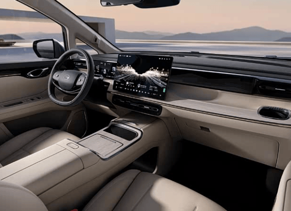 内饰采用环抱式座舱布局,全系标配10.25英寸仪表屏和15.6英寸中控屏。第二排提供17.3英寸多角度悬停折叠屏、随行小桌板和三温冰箱,座椅具备腿托、加热、通风和按摩功能。
