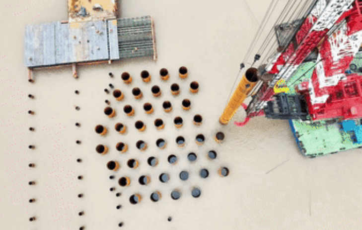 主塔施工采用智能化后压浆技术,通过5G技术实时监测压浆量、流速、压力等参数,提升桩基承载力。钢梁制造运用三维钻孔技术和电脑虚拟拼装技术控制高强螺栓精度,钢梁线型60米弦长高差控制在7毫米以内。主塔高153米,每座主塔下设76根长120米、直径2.5米的钻孔桩。