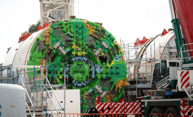 郊区铁路环线东段所有隧道掘进机和列车均由100%可再生电力驱动,所有车站以5星绿色之星评级为目标。一个TBM发射场已在Burwood建成,由Yurringa供电的机器将于今年晚些时候发射,第二个发射场挖掘工作正在Clarinda进行。